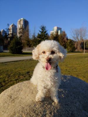 Last year we wanted to add another furry family member and were looking at shelters and rescues but things didn't work out. Then we ran into a blog post from a goldendoodle breeder in South Korea who couldn't find a home for this puppy because he was already a fully grown in size. We decided to adopt him, went to Korea and flew back with Mello. Mello (his well-deserved name is derived from both mellow and marshmallow), because of his size, we at first kept him on kibbles as we thought it would be too expensive to feed him raw. However, his diarrhea wouldn't stop for weeks and we made the decision to try raw food diet. Guess what? His issue has stopped almost immediately. Then we learned about bulk purchases from Wild At Heart and the great rewards system which helped our budget. With his coat being so much smoother and seeing the difference in his build and energy, we know we have made the right decision. I know many people are concerned about the cost factor when switching to raw diet. With the right amount of effort and research, there are ways to keep it under your budget but still feeding your dogs healthy food they deserve. Mello is a healthy and happy boy as you can see in the photo!