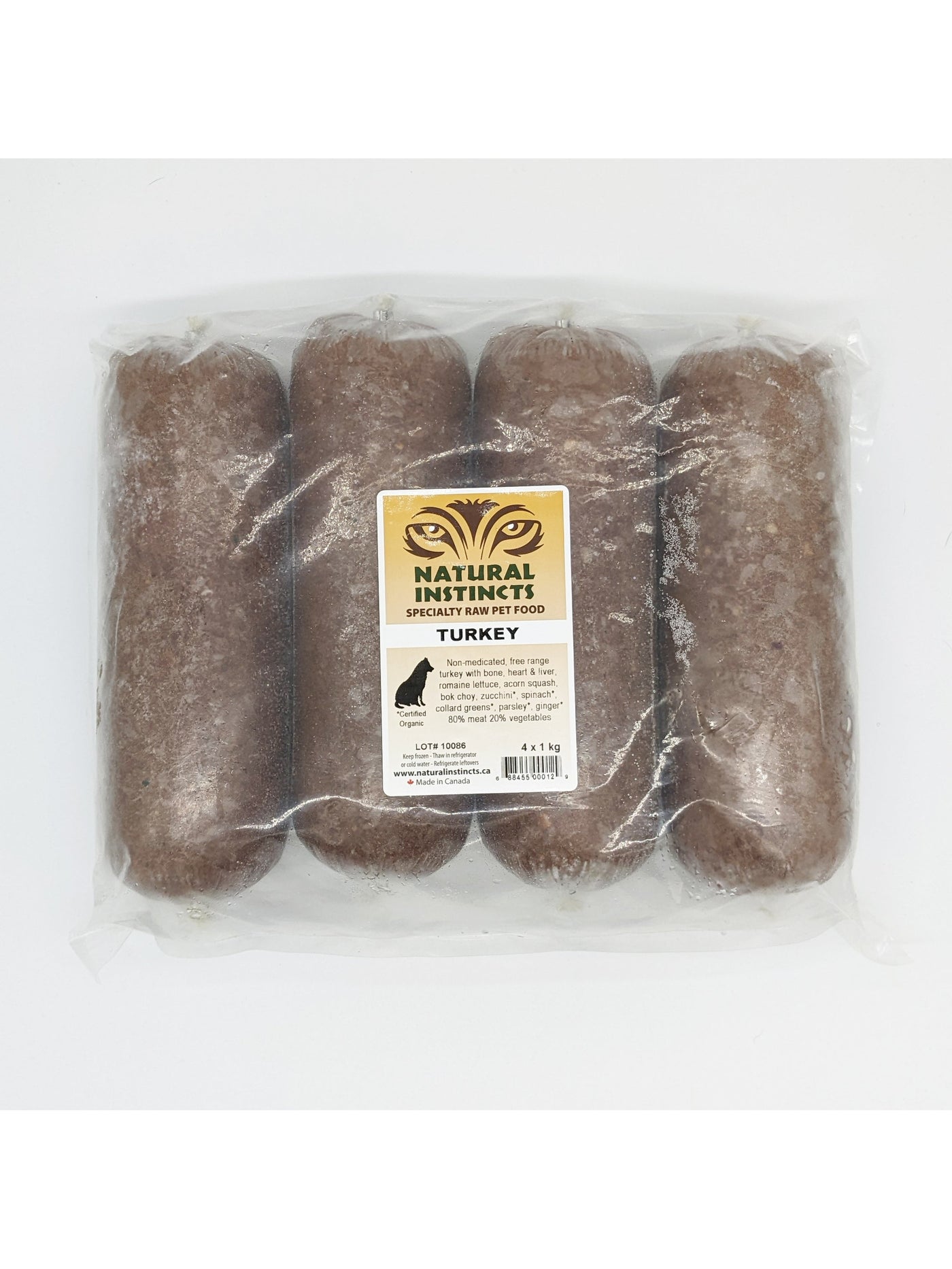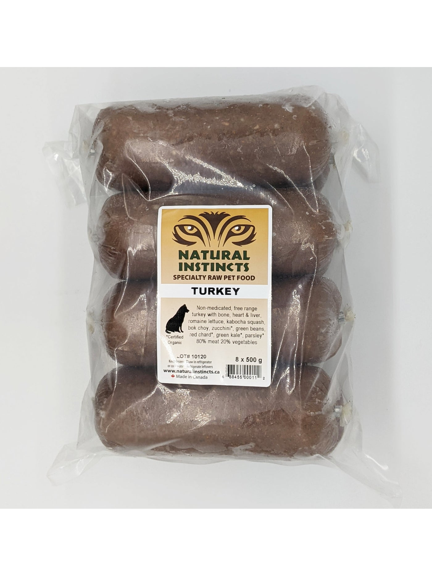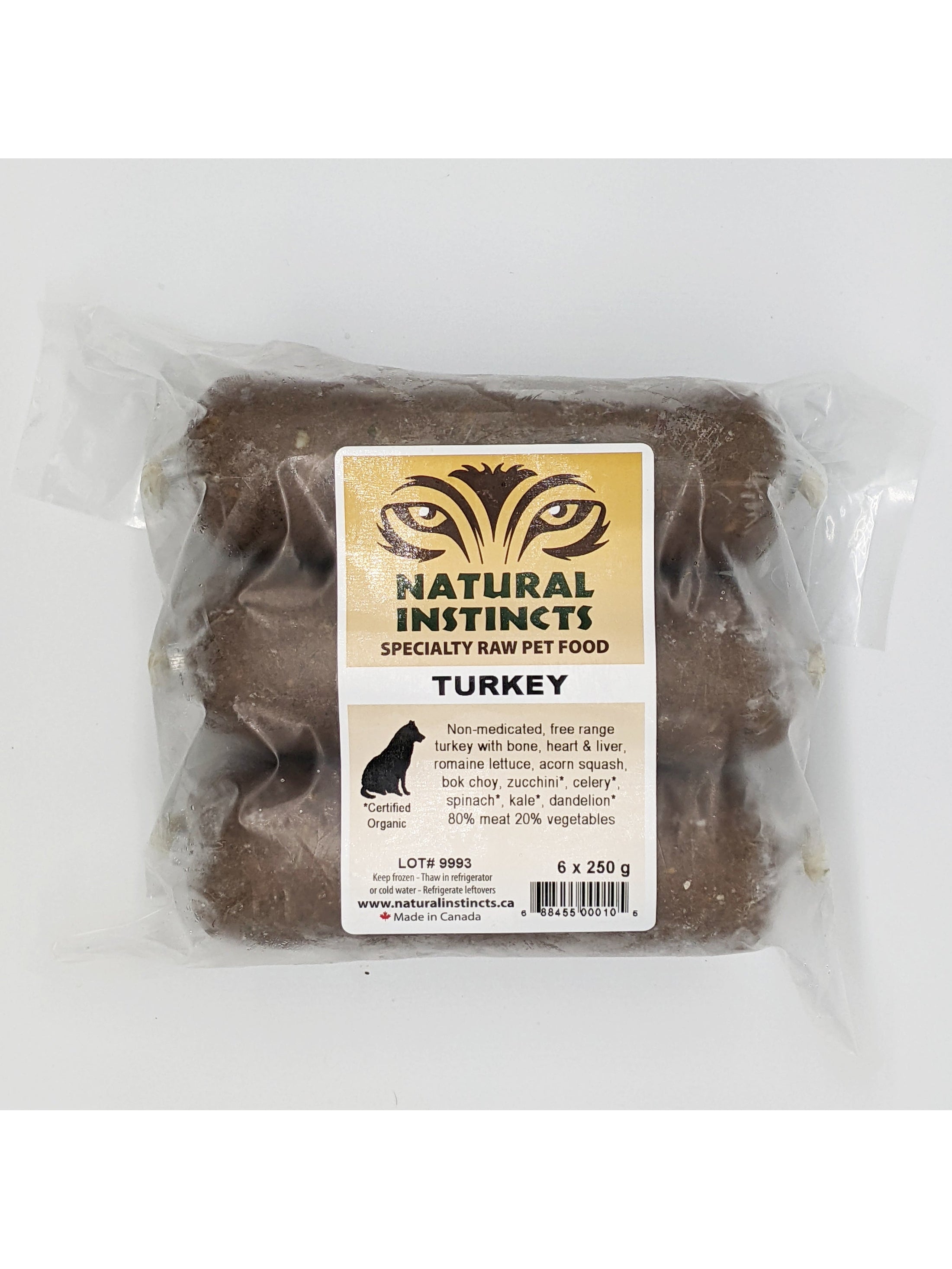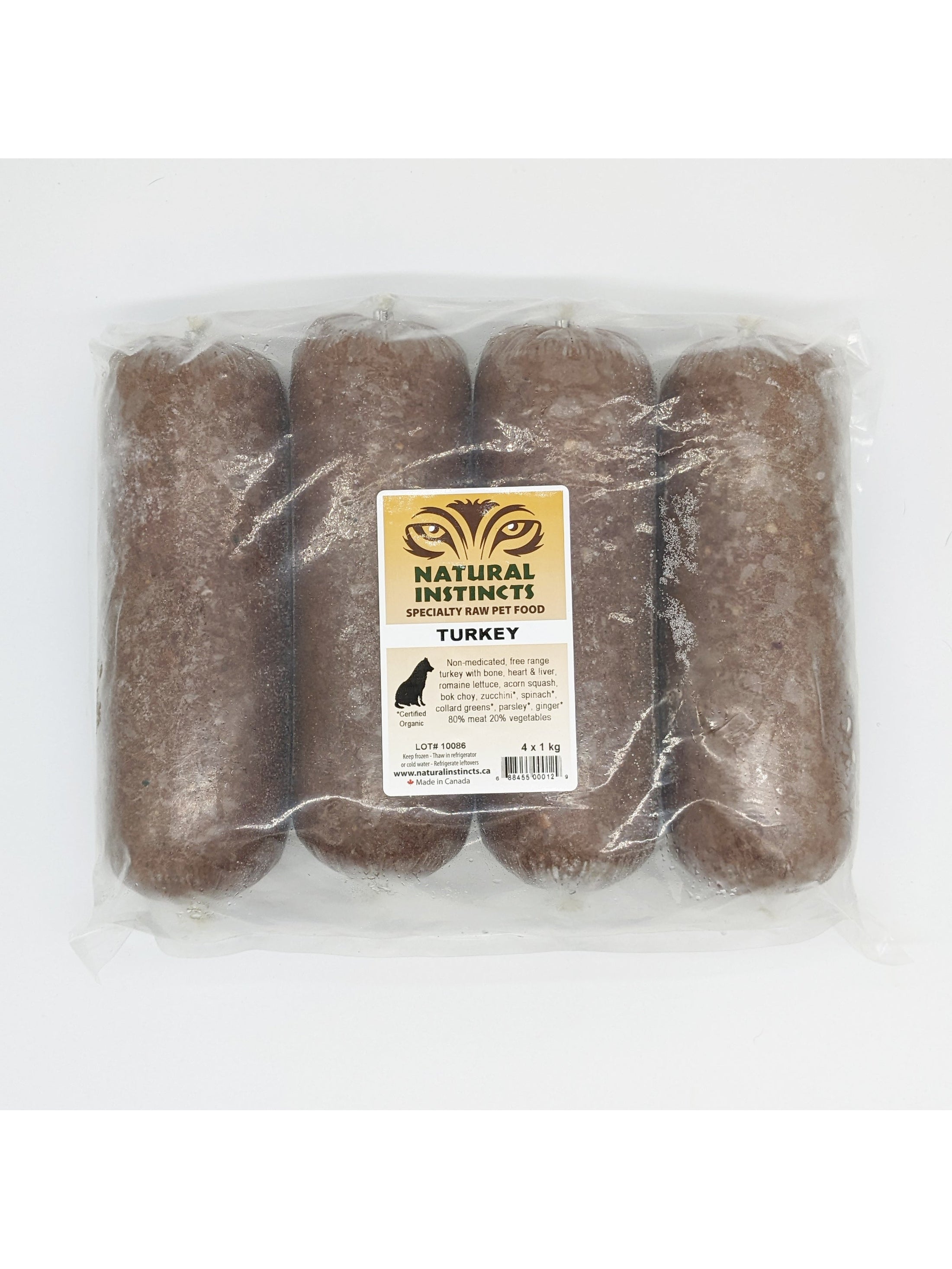 All meat used in Natural Instincts products is human grade and non-medicated. Most is free range and some certified organic or wild. Organ meat (heart & liver) is included in all varieties except Wild Salmon. Kidney is also included in Beef and Elk. Chicken, Turkey, Rabbit and Wild Salmon include ground bone as they are made using the whole animal or a combination of all or some of whole animal, meat, bone and carcasses.
